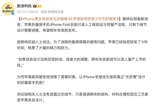 苹果 iPhone Fold 传新进展:有