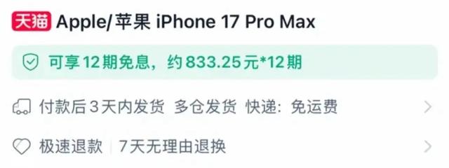 iPhone 17 Pro Max降价1000元!